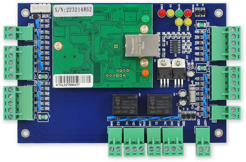 Beléptető egység (csak NYÁK) két ajtóhoz. A vezérlőegység két kimeneti relével rendelkezik a zárak vezérléséhez, lehetőség van 4 olvasó csatlakoztatására 26 bites Wiegand kimenettel két ajtó kétoldalas vezérléséhez. Az olvasókat maximum 100 m távolságra lehet csatlakoztatni. A vezérlőegység kiértékeli a leolvasókon lévő szövegrészeket, a hozzáférési rendszer felügyeletéhez felhasználói szoftver áll rendelkezésre cseh nyelven. A szoftver INGYENES, és lehetővé teszi a vezérlőegységek kezelését (akár 128 olvasó). Az SW és az egységek LAN -on keresztül kommunikálnak. A modul típusa beléptető egység 2 ajtóhoz A modul típusa (Csak PCB) Tápegység 12 V DC A jelenlegi felhasználás max 200 mA Külső eszközök csatlakoztatása Wiegand 26bit -en keresztül csatlakoztatott olvasók Külső eszközök csatlakoztatása 4 olvasó két ajtó kétoldalas vezérléséhez Programozás PC - TCP / IP használatával Kimenetek 2 x relé, NC / NO Max. kimeneti relé terhelése 24 V / 5 A Relé aktiválási ideje 00–99 másodperc Kilépés gomb Igen Optikai jelzés LED -ek Hangjelzés Nem Végrehajtás NYÁK...