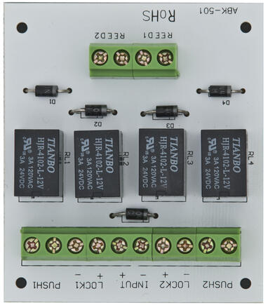 A PCB-501 egy zsiliprendszert megvalósító kétajtós vezérlő modul. Ez azt jelenti, hogy amíg az egyik ajtó nyitva van, a másik nem nyitható. A modul NC (szünetáramú), azaz feszültségre záró elektromos zárakat tud vezérelni, így alkalmas síkmágnesekhez, valamint fordított működésű zárakhoz. Az áramkör időzítési funkciót nem tartalmaz.