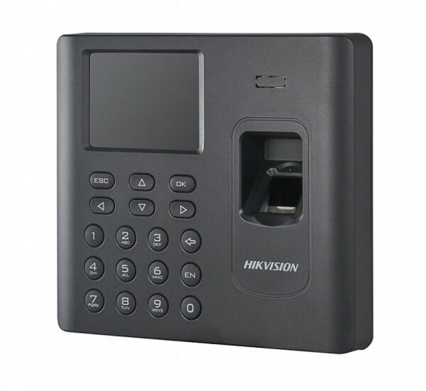Hikvision DS-K1A802AMF-B Munkaidő terminál, ujjnyomat- és Mifare hitelesítéssel, billentyűzettel; RJ45; akkumulátorral