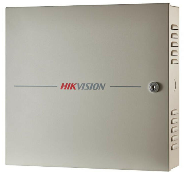 Hikvision, ajtóvezérlő, TCP/IP, RS-485, Wiegand 26/34 bit, 4 db zár / 4 db riasztás kimenet, 12 V DC