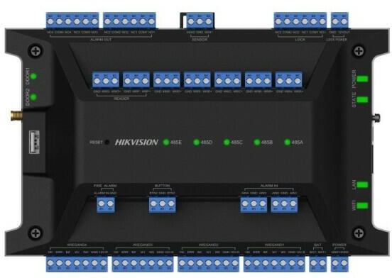 Hikvision DS-K2702WX-E1(P) Ajtóvezérlő 2 ajtóhoz; 2 irány; 4 Wiegand & 4 RS-485 olvasó