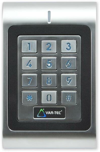 Autonóm kártyaolvasó, szilárd fém kivitelű billentyűzettel. Az olvasót beltéri vagy kültéri használatra tervezték. A felhasználó jogosultsága kód megadásával, kártya csatolásával vagy a kártya kóddal történő megerősítésével lehetséges. Az olvasó kimeneti jele relé formájában van. Az ajtó működtetésére a kilépőgomb bemenete is használható. A modul típusa olvasó billentyűzettel Olvasási tartomány Kártya: 2,5 - 5 cm Olvasási tartomány Medál: 0 - 2,5 cm Engedélyezés kártya vagy kód (kártya és kód) Olvasó programozás az olvasó billentyűzetének használatával Kártya EM 125 kHz szabvány felhasználók száma max 1000 Telepítési kód igen, 1 A felhasználói kód hossza 4-6 számjegy Tápegység 9 - 18 V DC A jelenlegi felhasználás max 80 mA Kimeneti jel az olvasóból 1 x relé, NC / NO Max. kimeneti relé terhelése 12 V / 3 A Relé aktiválási ideje 1 - 99 mp Bemenet ajtóérintkező Kilépés gomb Igen Riasztás kimenet Igen Szabotázs igen, a hangjelző aktiválása Optikai jelzés Piros / zöld / sárga LED -ek Hangjelzés igen, csengő Háttérvilágítás gombok Igen Végrehajtás tömör fém borítás...