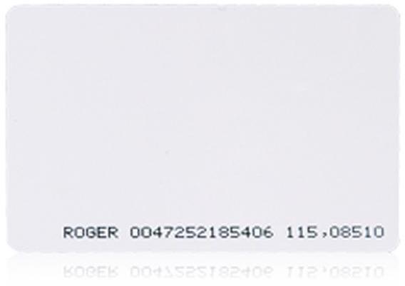 ROGER EM 125 kHz ISO méretű vékony PVC proximity kártyaTulajdonságok:64 bites ROM memóriagyárilag programozvanyomtatható
