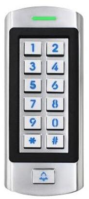 K10-EM - Cseppálló (IP66), vandálbiztos, önálló működésű kártyaolvasó és kódzár vendég funkcióvalAz önálló működésű kártyaolvasók és kódzárak nagy biztonságú eszközök, alkalmasak szinte bármilyen belépőpont vezérlésére. Telepítésük és használatuk rendkívül egyszerű. A K10-EM egy cseppálló, esztétikus fém házas EM kártyaolvasó és kódzár. Vandálbiztos kivitelének és IP66 védelmének köszönhetően kültérre is alkalmas választás lehet, dedikált csengőgombjának és csengőkimenetének köszönhetően pedig kifejezetten bejáratoknál a legjobb. Programozása a tasztatúrán keresztül egyszerűen elvégezhető. Az eszköz 1 000 felhasználót képes megtanulni, ebből pedig 10 felhasználó van fenntartva vendégek számára. Ezekre a helyekre olyan kártyákat vagy kódokat lehet feltanítani, melyek a feltanítás során megadott alkalommal használhatók (1 és 10 között), majd ezután automatikusan törlődnek.